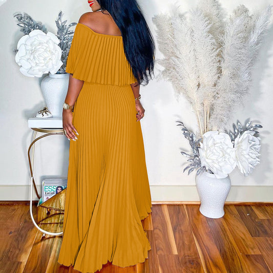 Off-Shoulder Pleated Tube Dress – Radiant Summer Elegance